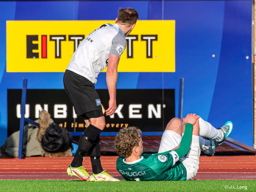 Ástbjörn dæmdur brotlegur þegar hann keyrir Ísak Snær niður. Þarf að passa sig því hann er á spjaldi.