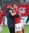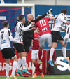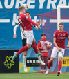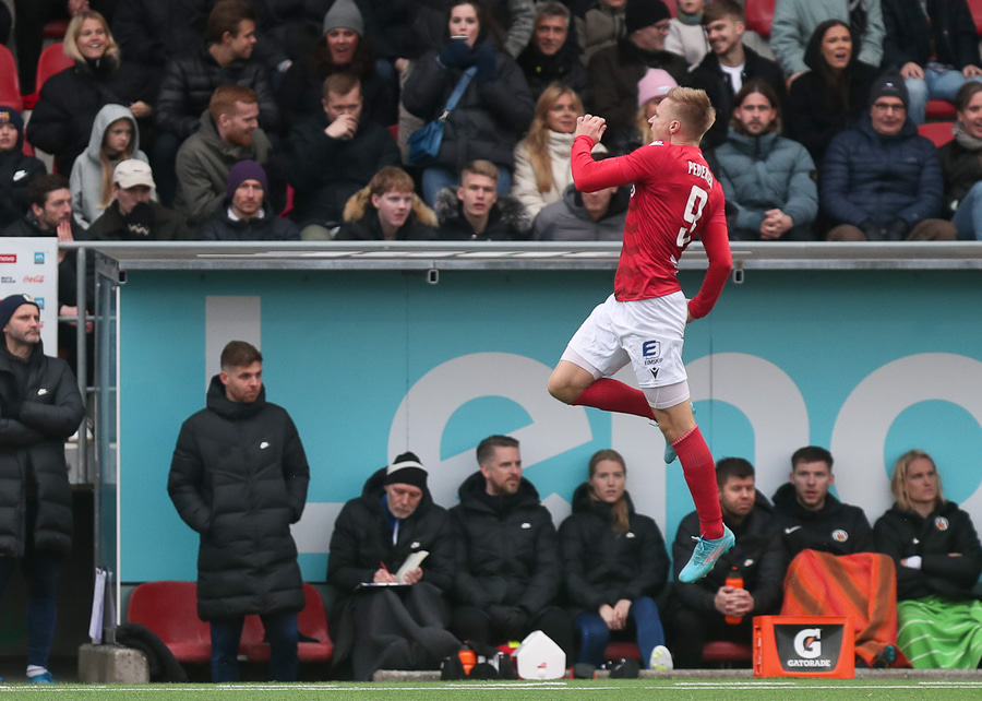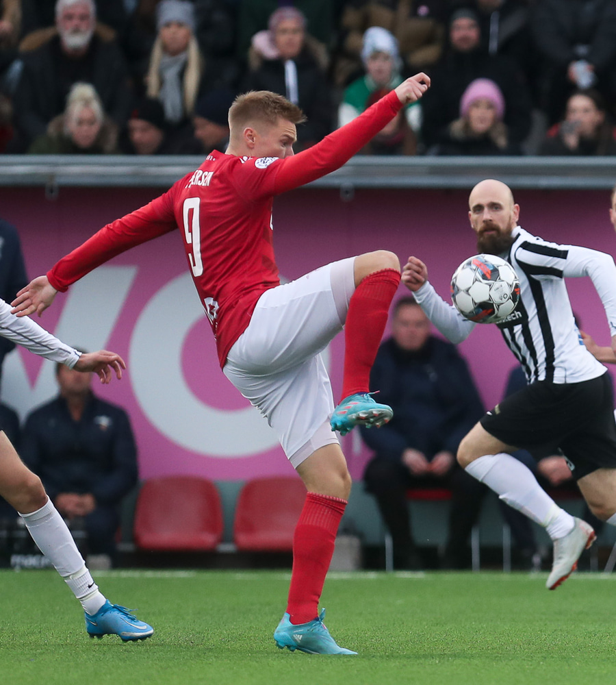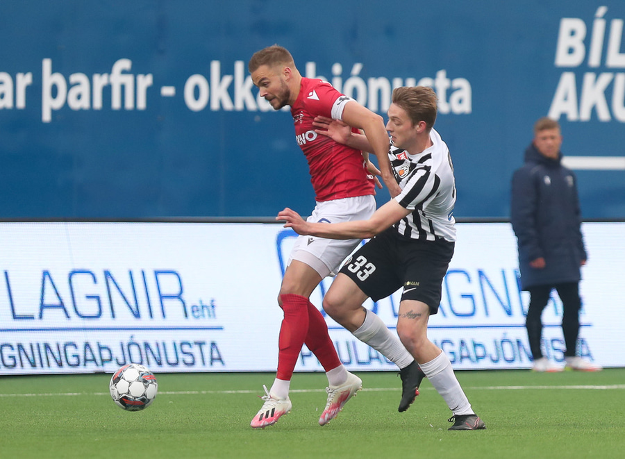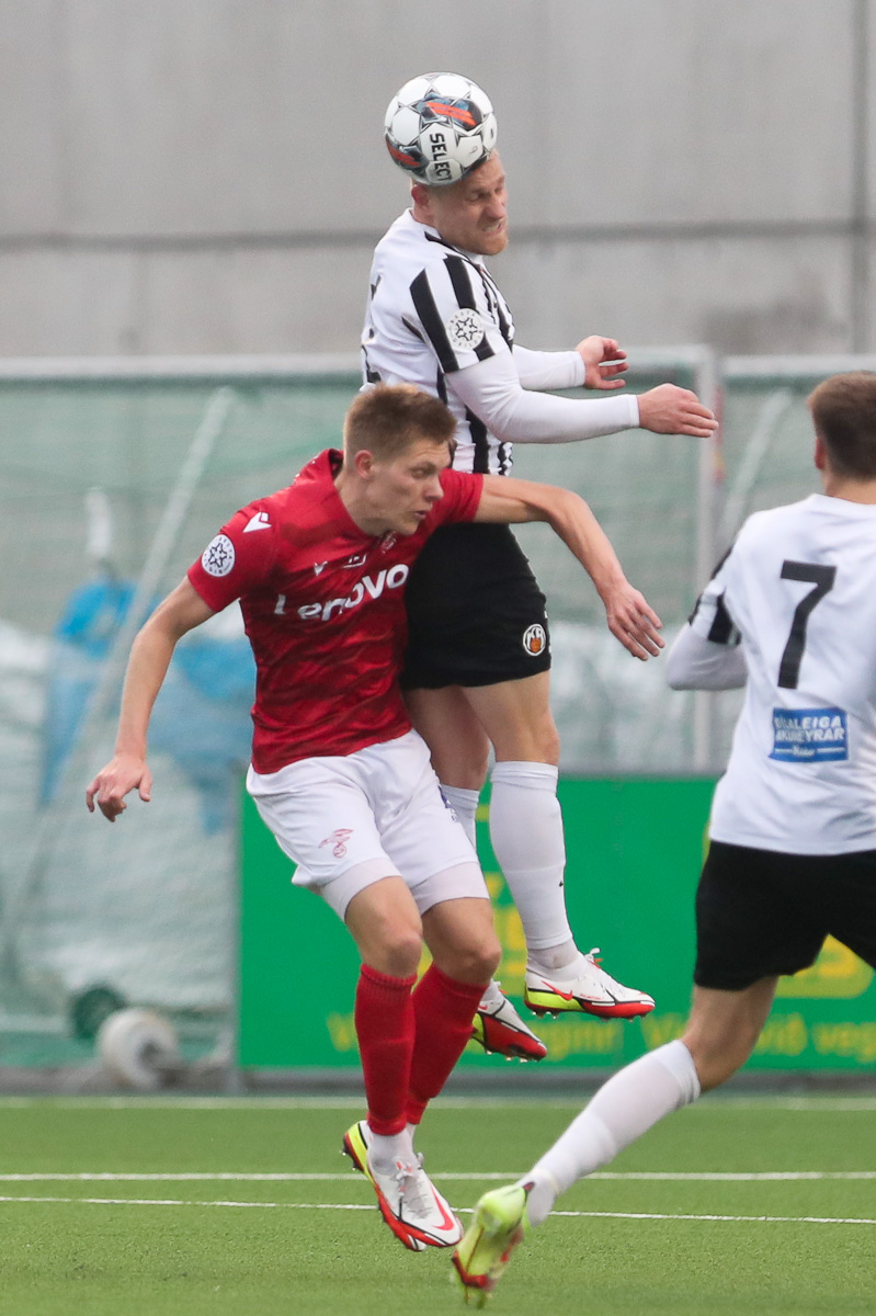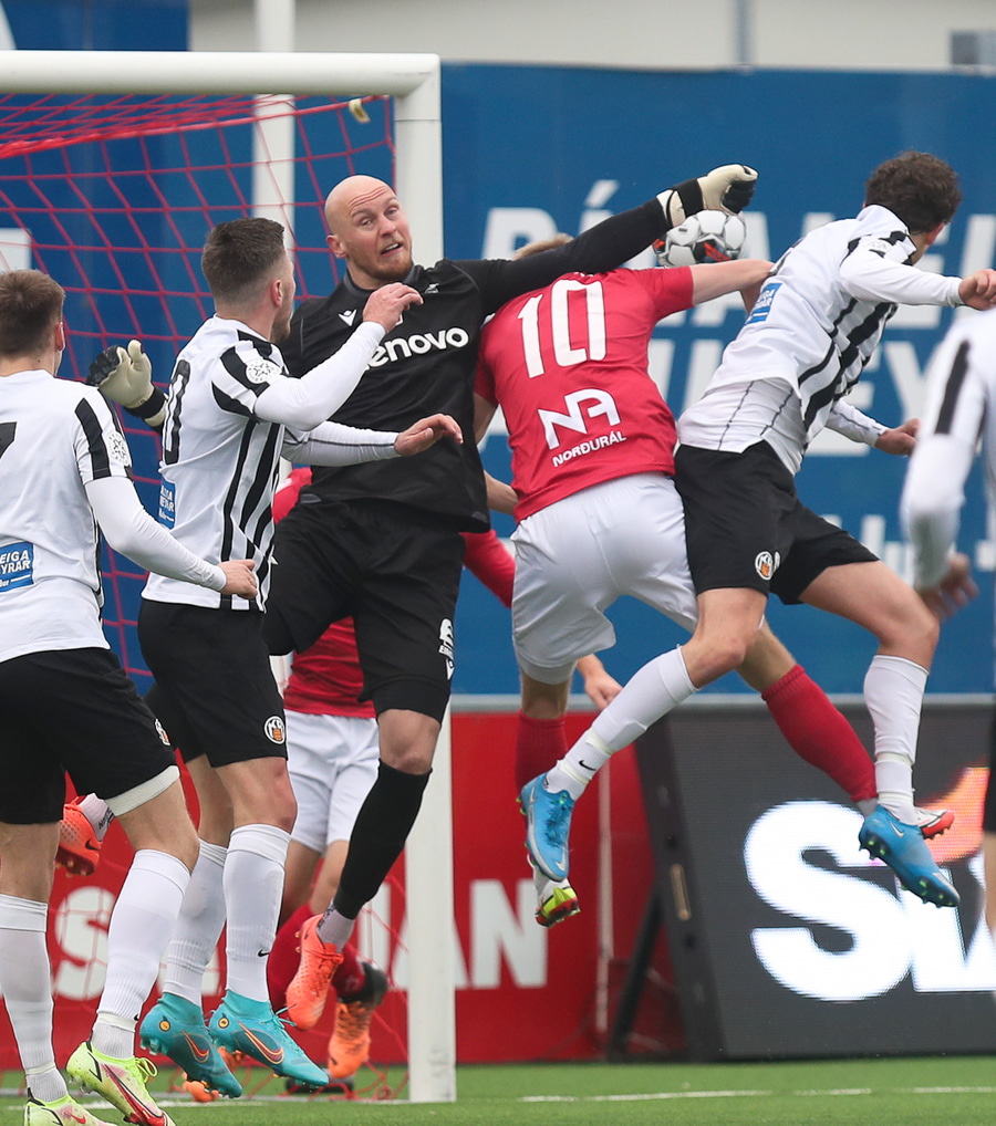 Í þeirri seinni var það Jesper Juelsgård sem skallaði boltann frá.
