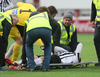 Fyrst var það Hedlund en nú er það Kennie Chopart sem liggur og þarf aðhlynningu frá Valgeiri Viðarssyni sjúkraþjálfara KR-inga. Einar Óli Þorvarðarson sjúkraþjálfari Vals er einnig mættur inná völlinn og fylgist með.