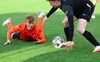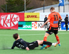 Fáranleg tækling með báða sóla á undan sér Hallur stingur við eftir tæklinguna.