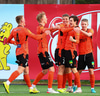 Flott sókn Fylkismanna endar á að Mathias potar boltanum yfir línuna.
