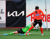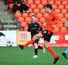 Fylkir fær hornspyrnu sem endar á skyndisókn KV. Ásgeir vel vakandi í markinu og skallar boltann í burtu kominn langt út úr markinu.