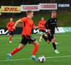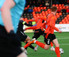 Oddur Ingi með skot rétt framhjá marki Fylkis. Úr þröngu færi vinstramegin á vellinum.