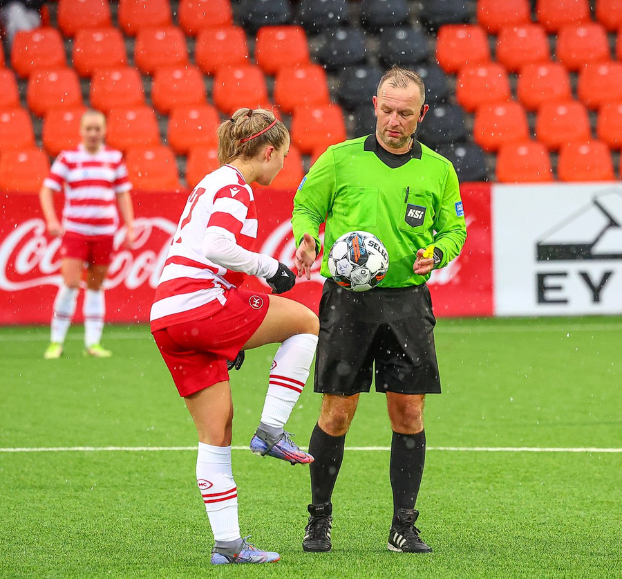 HK skorar mark sem er dæmt af vegna rangstöðu! Flott sókn að sama skapi hjá HK. Gabriella þræðir boltann á Örnu á kantinum sem sendir hann fyrir á Emmu Sól sem er dæmd rangstæð.