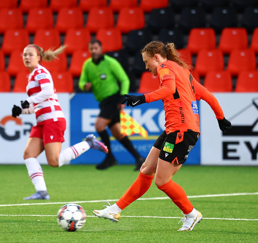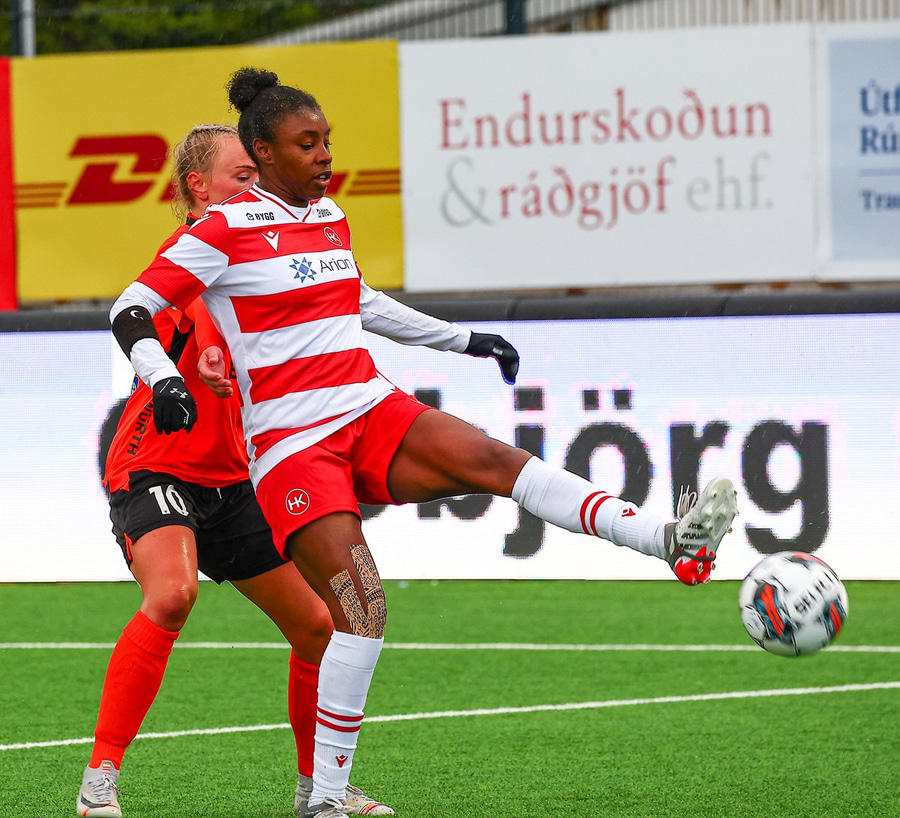 Þarna gat Isabella klárað þrennuna! Fær gott skalla færi fyrir markið en yfir fer boltinn