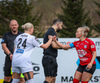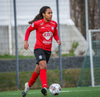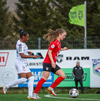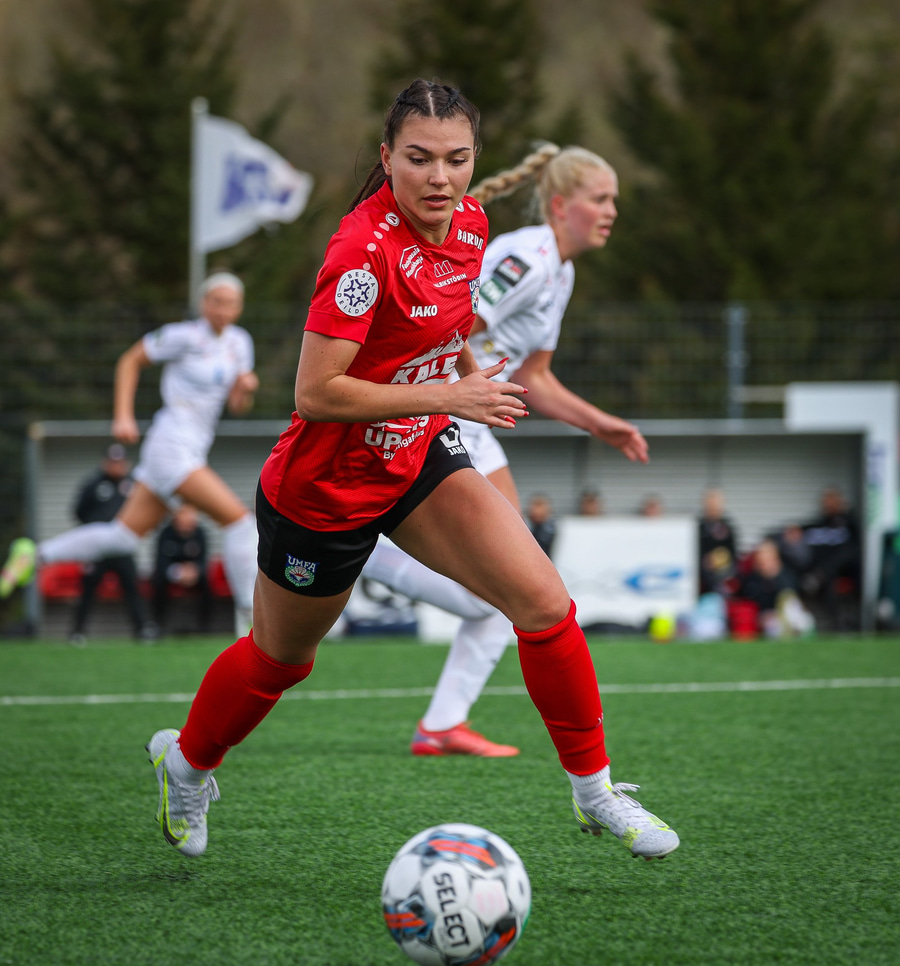 Langur bolti fram ætlaður Jade en Unnur Dóra með góða tæklingu og setur boltann út af í innkast.