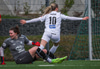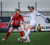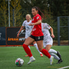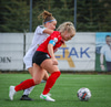 Þórhildur að komast ein í gegn en Arna mætir á fullri ferð og setur boltann í horn.