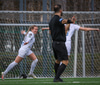 Andrea Mist brýtur á leikmanni Aftureldingar á miðjumm velli og fær tiltal frá Twana.