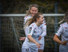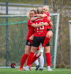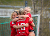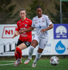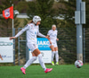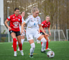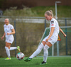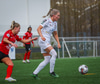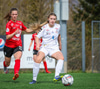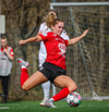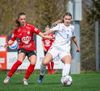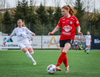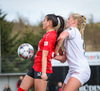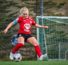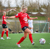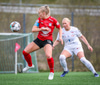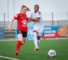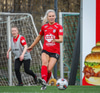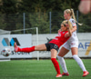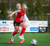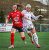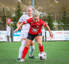 Þórhildur með fyrirgjöf ætlaða Kristínu Þóru en Hulda Björg er á undan í boltann og kemur honum frá.