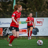 Kristín Þóra fær sendingu frá Birnu ofarlega hægra megin á vellinum og kemur sér í gott skot færi inn í teig, hefur nóg tíma og leggur boltann fram hjá Hörpu.