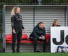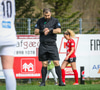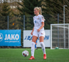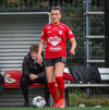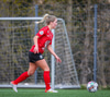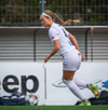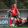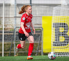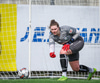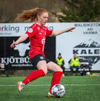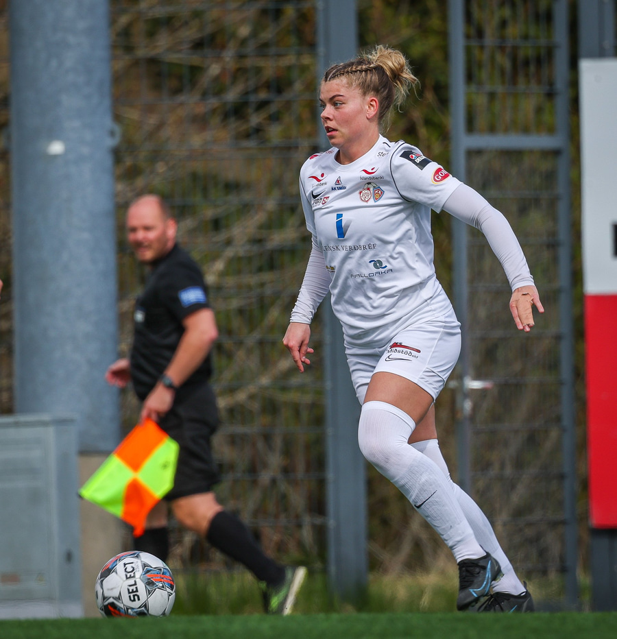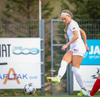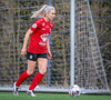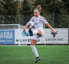 Tiffany kominn upp að endalínu og reynir að senda boltann fyrir en Eva handsamar boltann.