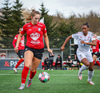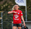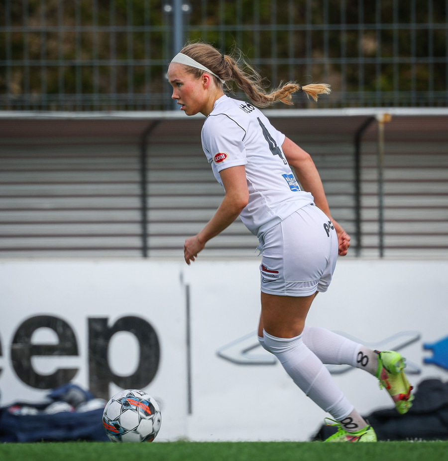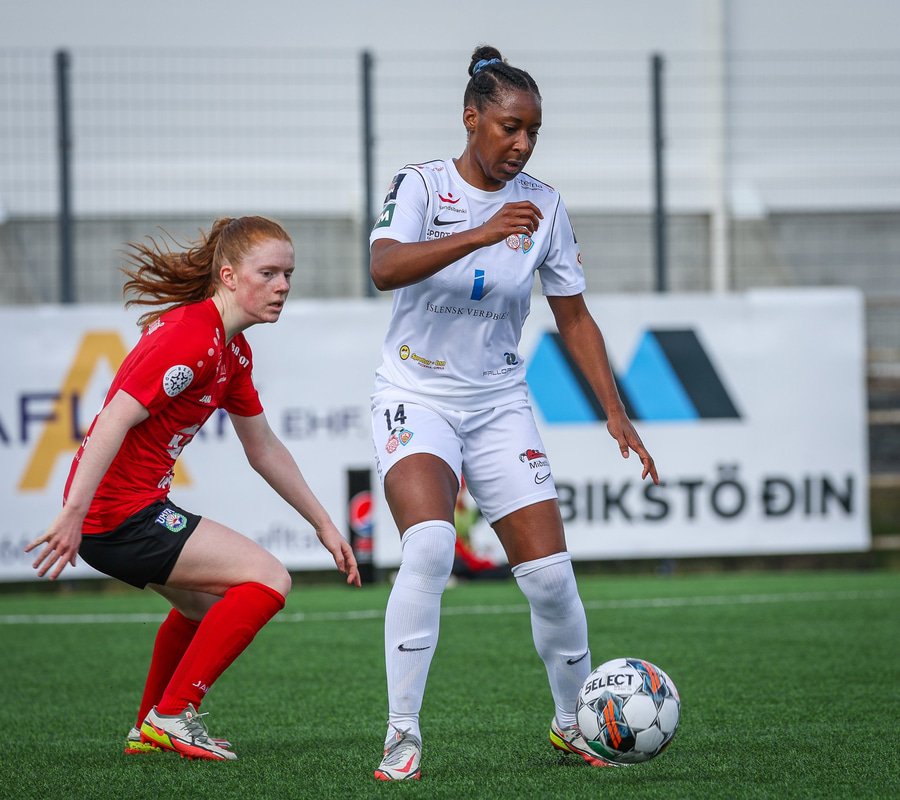 Þórhildur með fyrirgjöf af vinsntri kantinum á Jade Gentile sem hittir ekki á markið.
