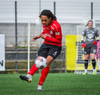Afturelding fær horn, Þórhildur tekur spyrnuna og setur hann á fjær en þar er engin.