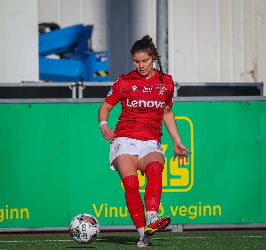 Ída Marín fær boltann við teiginn vinstra megin og tekur eina snertingu inn á völlinn og nær skoti/fyrirgjöf en boltinn afturfyrir endamörk.