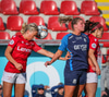 Elías Viðarsdóttir og Kristrún Ýr heilsast og það fer allt að verða til reiðu hér á Origovellinum.