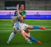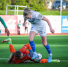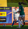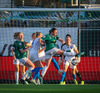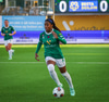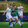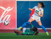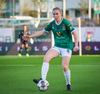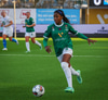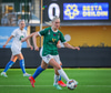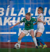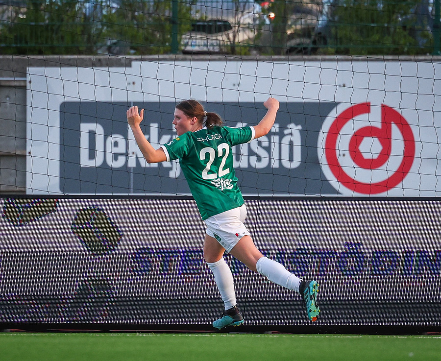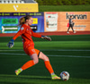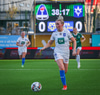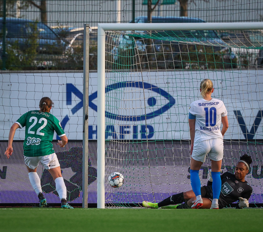 Anna Petryk með aukaspyrnu á miðjum velli sem flýgur í gegnum allan pakkann í lúkurnar á Chante í markinu