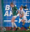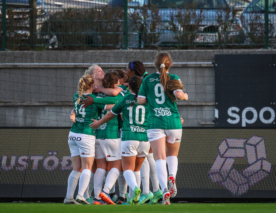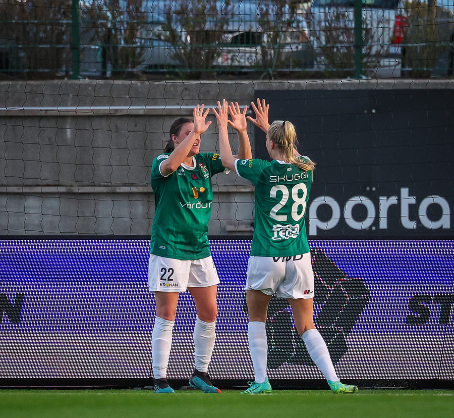 Eftir fínt spil á Alma fyrirgjöf fyrir sem Telma missir en nær svo í annari tilraun.