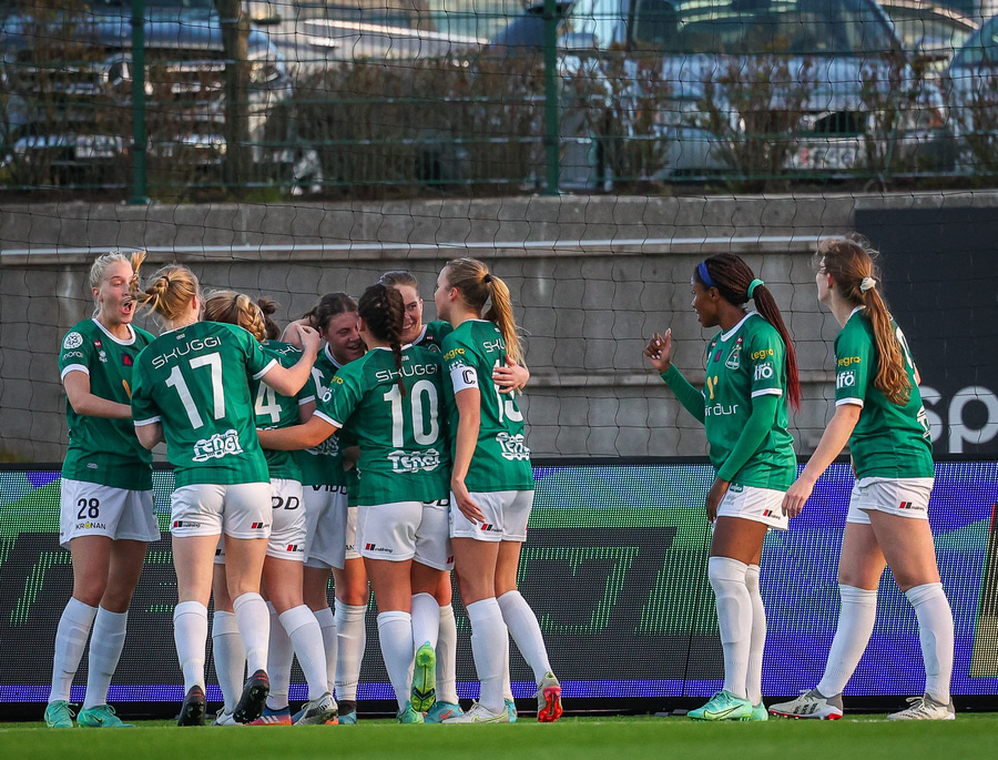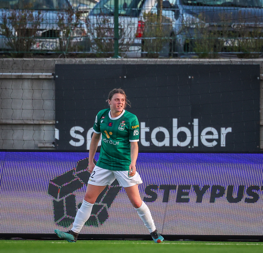 Chante fer í skógarhlaup og skot á autt markið frá Hildi fer í hendina á varnamanni.