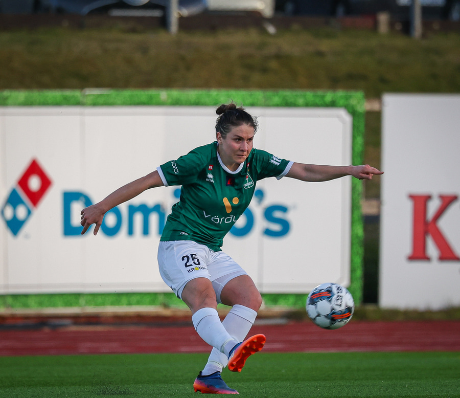 Helena Ósk lætur hér vaða fyrir utan teig en boltinn fer framhjá, ekki svo galin tilraun