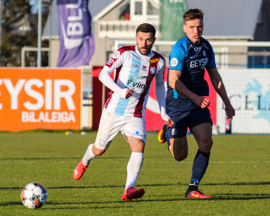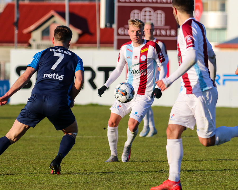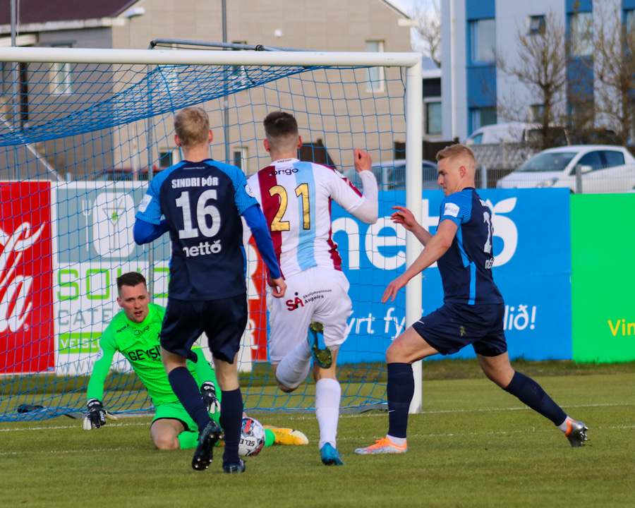 Leiknismenn halda áfram en Arnór Ingi hittir ekki á markrammann úr ágætu færi.