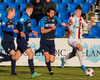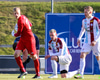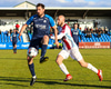 Adam Ægir finnur Rúnar í svæði úti til vinstri, Rúnar reynir fyrirgjöf en af varnarmanni og afturfyrir