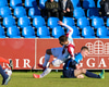 Missir boltann of langt frá sér við miðlinu og fer í hálf glórulausa tæklingu. Fyllilega verðskuldað gult.