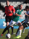 Taylor með fast skot utan af marki sem Björk varði glæsilega meó fótunum eins og handboltamarkvörður.