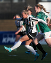 Hröð sókn hjá KR, Guðmunda sendir til hægri á Marcella Marie Barberic sem skaut að marki en vel yfir.