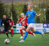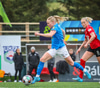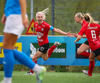 Kristín Þóra með fyrirgjöf á Sigrúnu Gunndísi sem kemur á mikilli ferð en hittir boltann ekki almennilega.