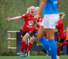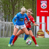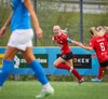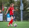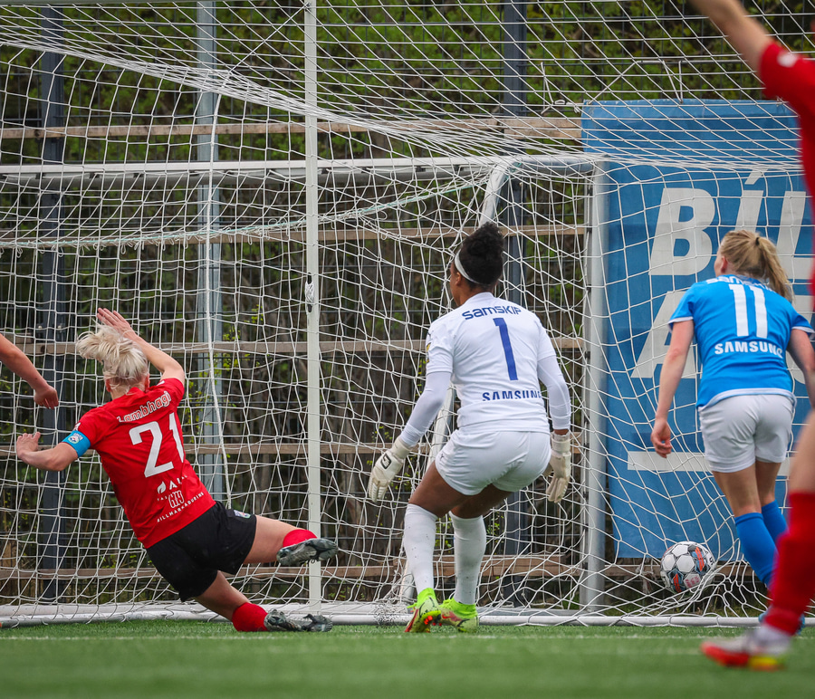 Birna Kristín með fyrirgjöf á Kristín Þóru sem nær skoti beint á Chante og engu munaði að hún hefði misst boltann í gengum klofið!