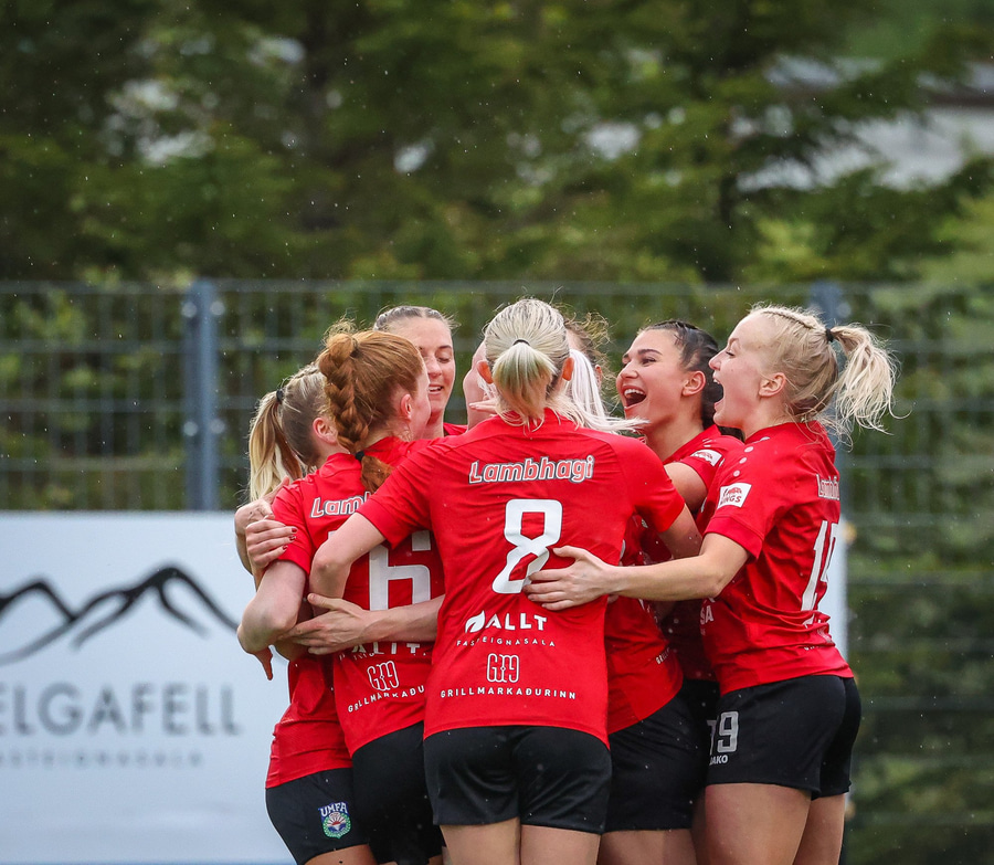 Jade spilar góðan þríhyrning við Önnu og sendir fasta sendingu fyrir markið og Sigrún var þar mætt að pota boltanum inn.