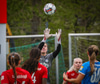 Katrín er að innsigla sigurinn með skallamarki úr horni!