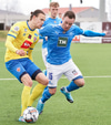 Ívar í brasi og Eggert vinnur boltann við teig KA. Eggert skýtur en Stubbur er alltaf með þetta.