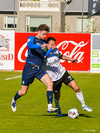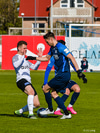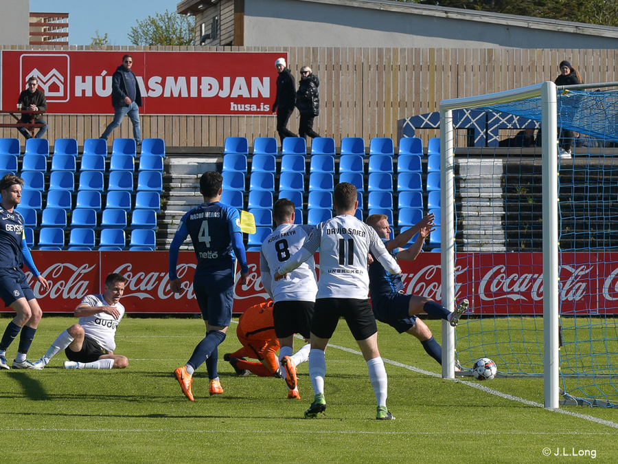 Vuk með boltann úti til vinstri, setur boltann með jörðinni inn á nærstöng þar sem Matti er fyrstur á hann í þéttum pakka og nr að skófla honum af harðfylgi yfir línunna af stuttu færi.