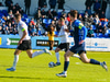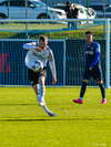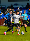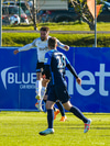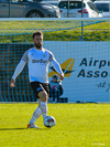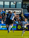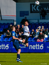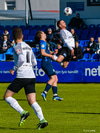 Lennon spyrnir en Nacho skallar beint aftur í horn, Seinni spyrnan skölluð frá.