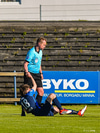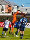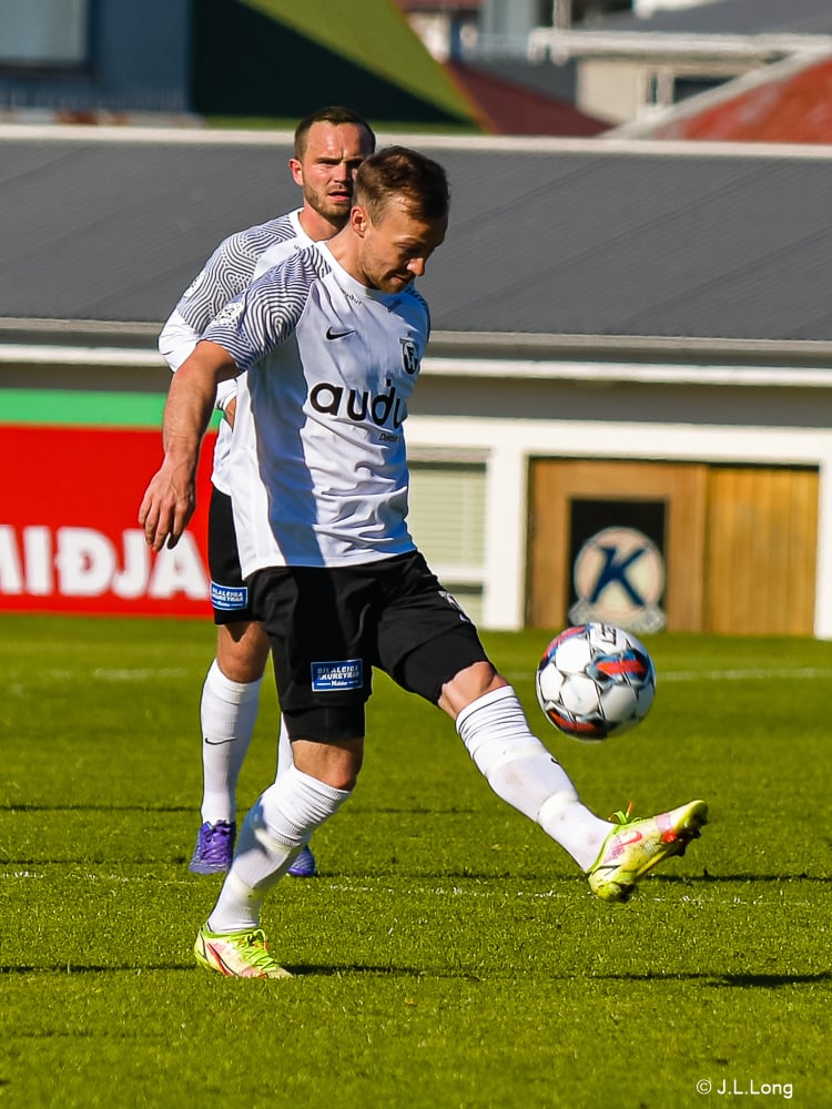 Boltinn beint upp i loftið í teig Keflavíkur, Sindri í markinu og Matti í einhverju klafsi og Matti fer niður, aldrei neitt í þessu og áfram með leikinn.