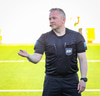 Ásmundur flautar til leikhlés eftir skemmtilegan fyrri hálfleik, Stjarnan leiðir með einu marki en það en leikurinn er jafn og allt getur gerst í seinni hálfleik.