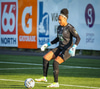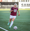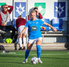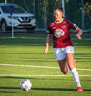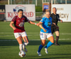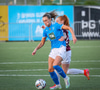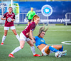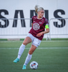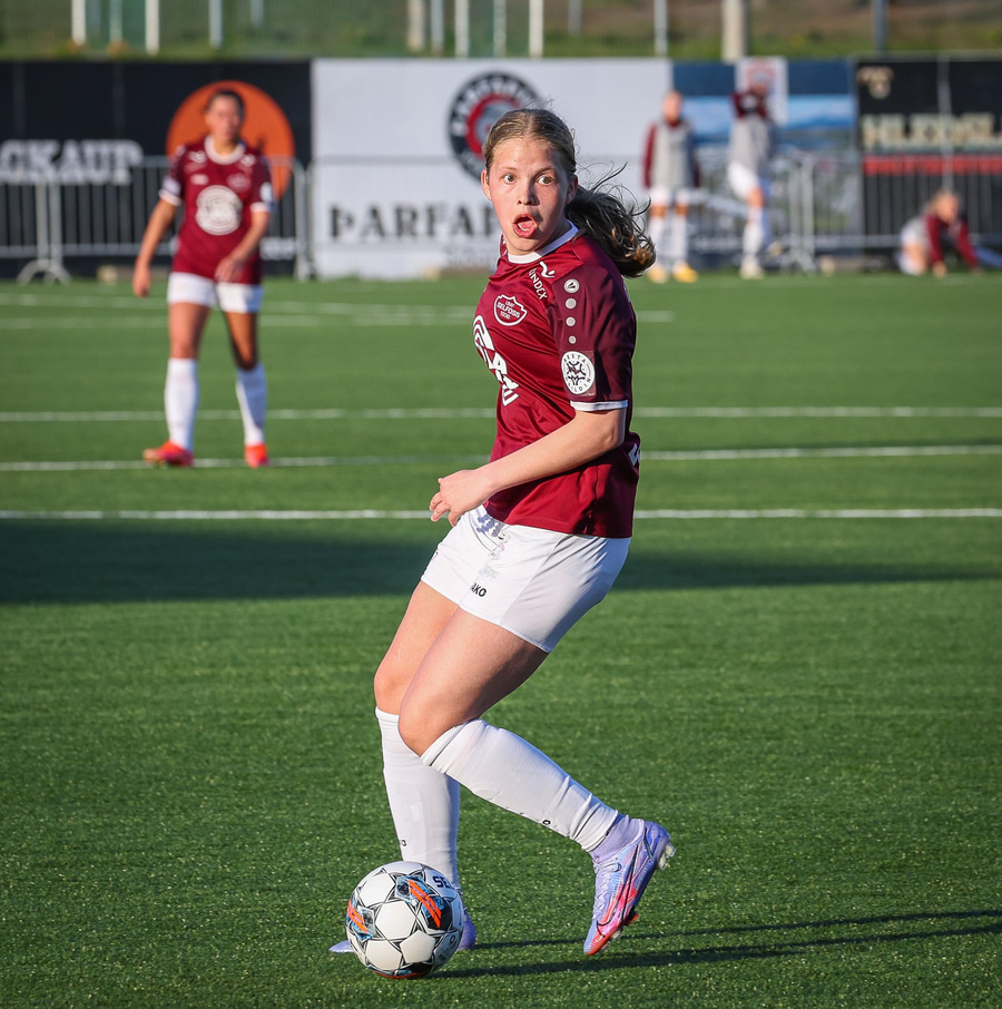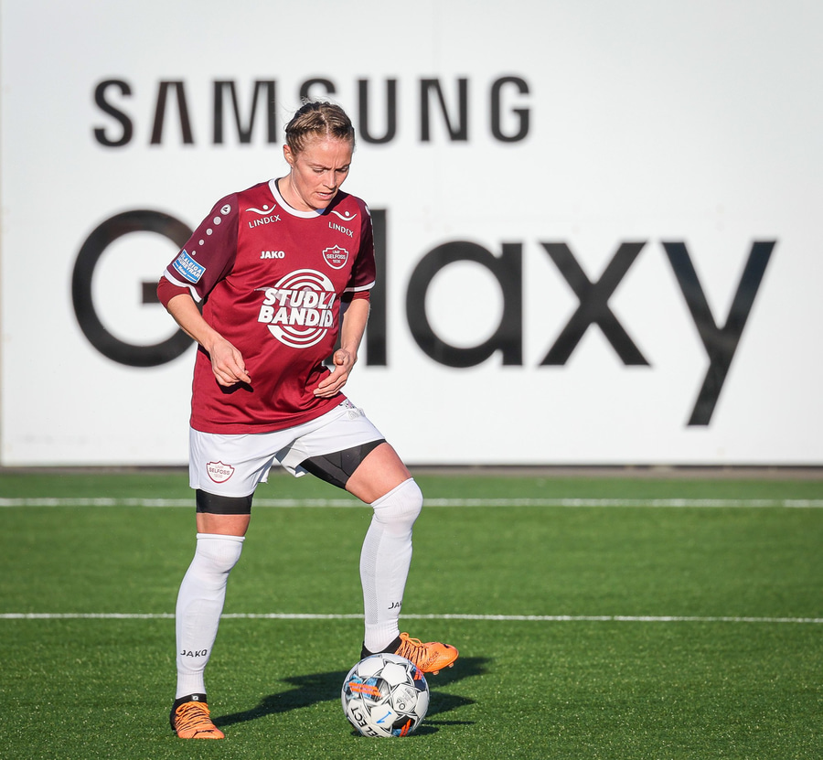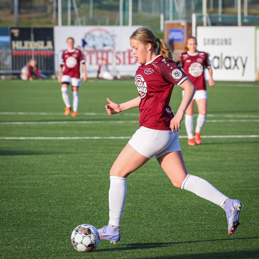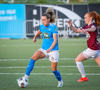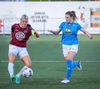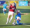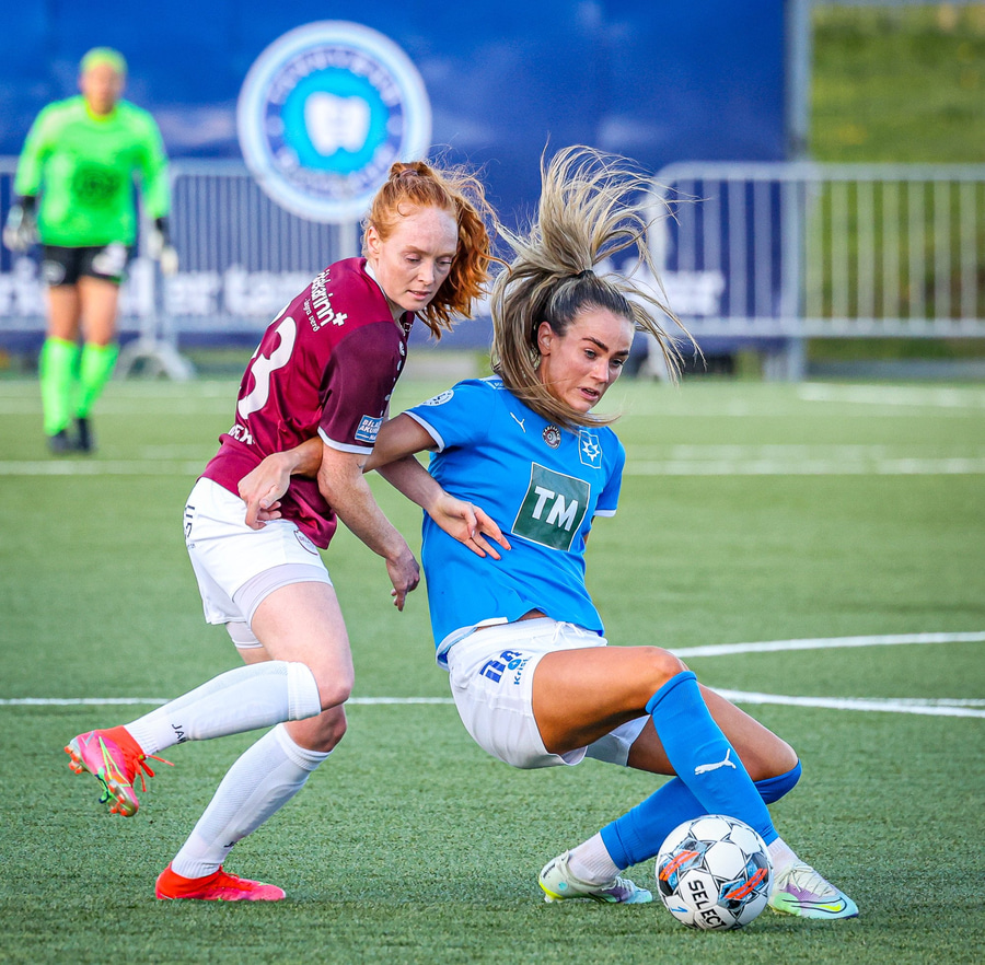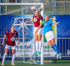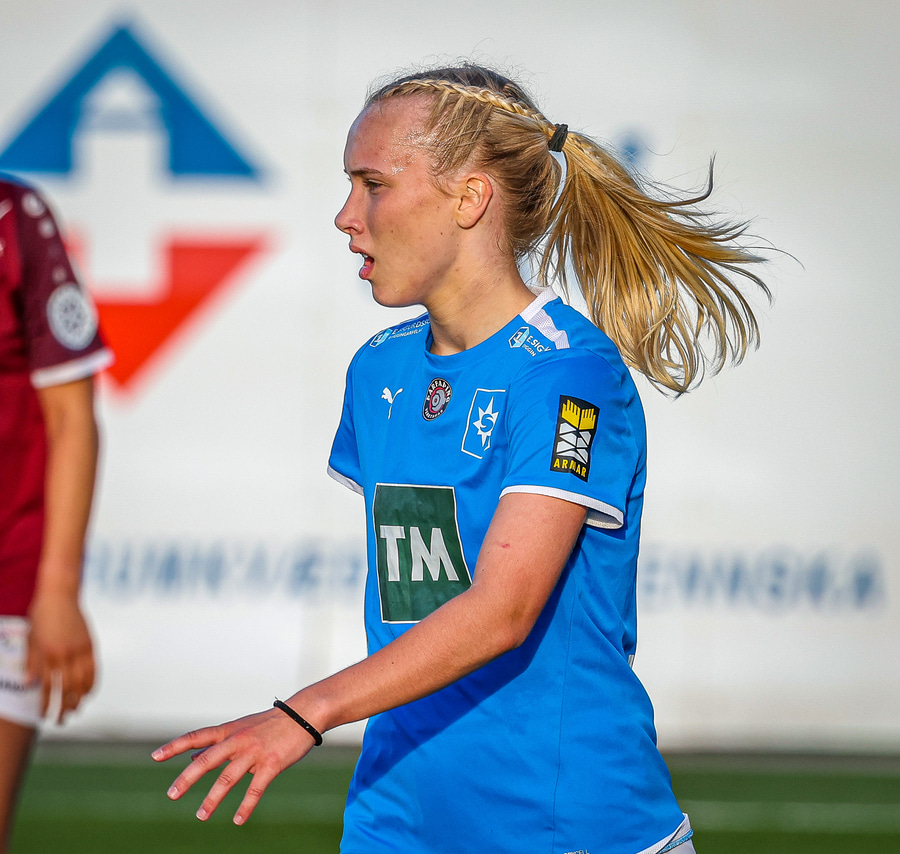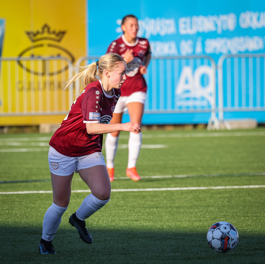 Barbára er kominn upp hægti kantinn á ferðinni reynir að komast fram hjá Sædísi en Sædísi á góða tæklingu og kemur boltanum frá.