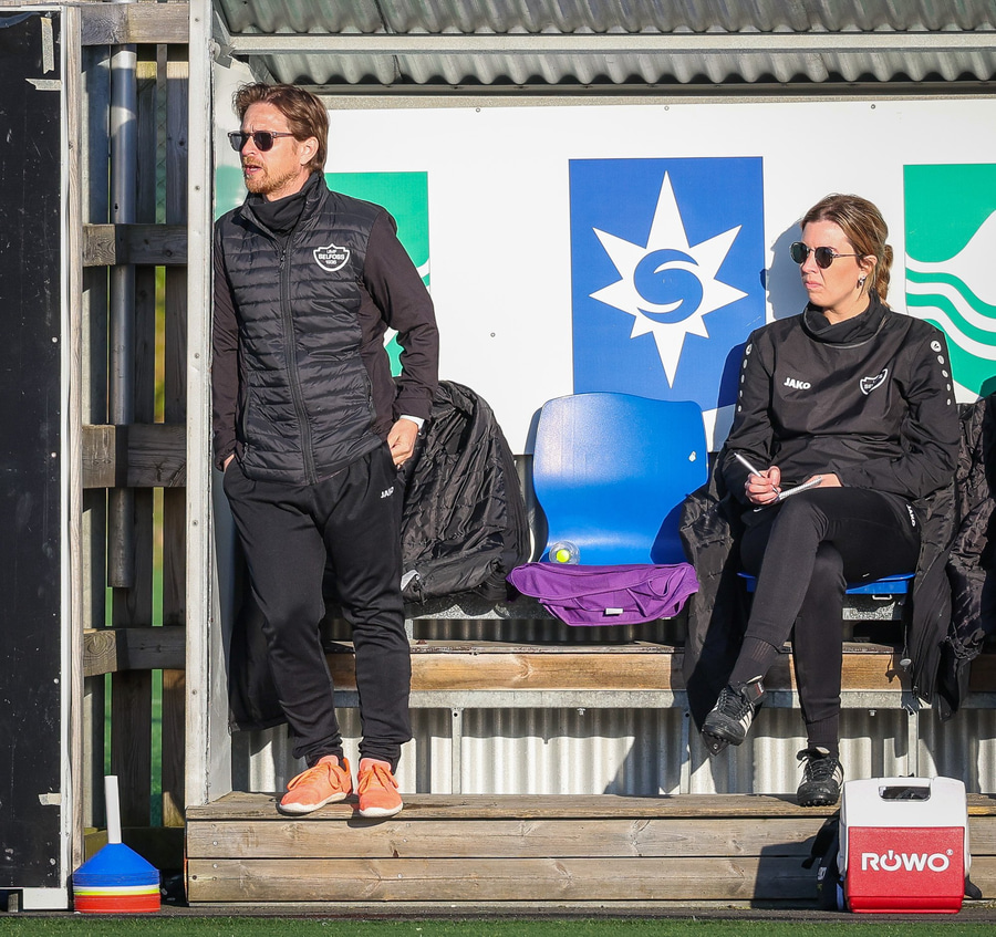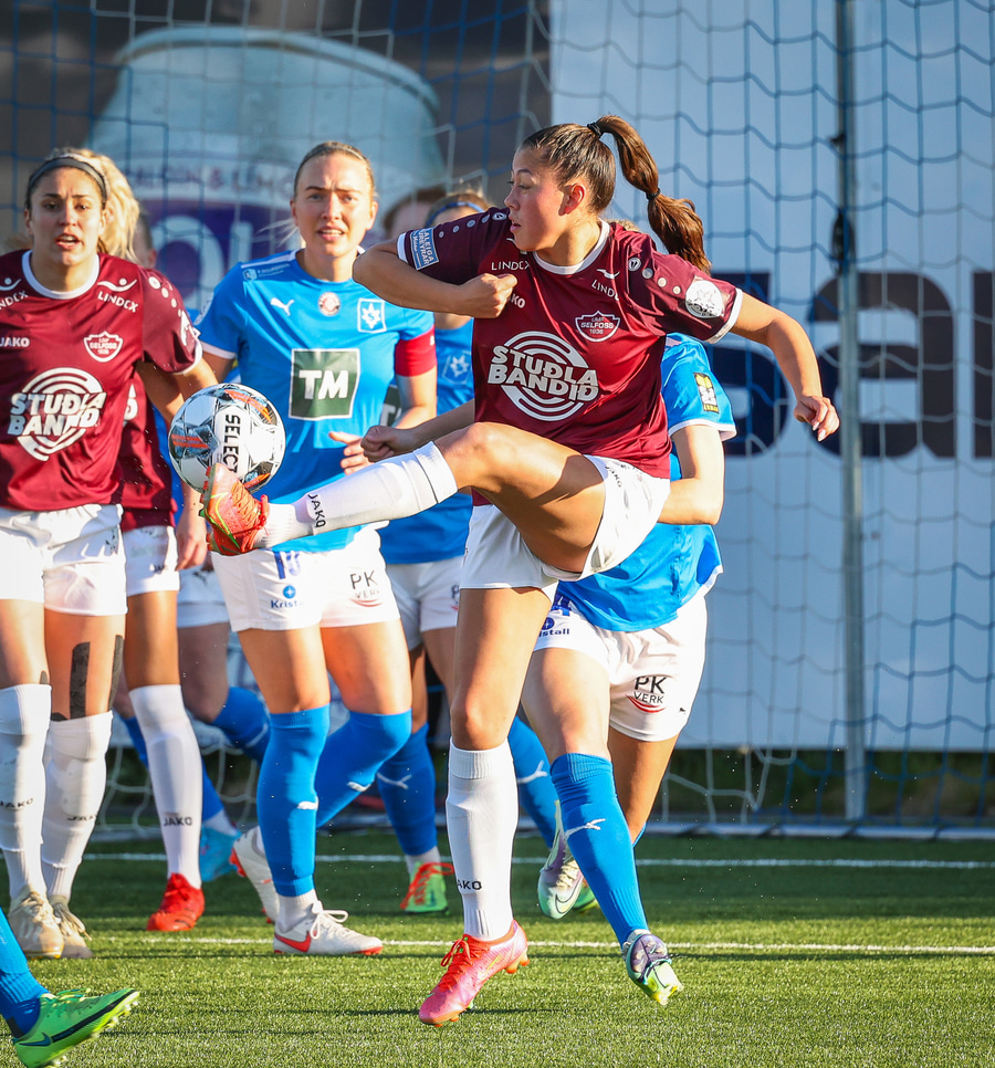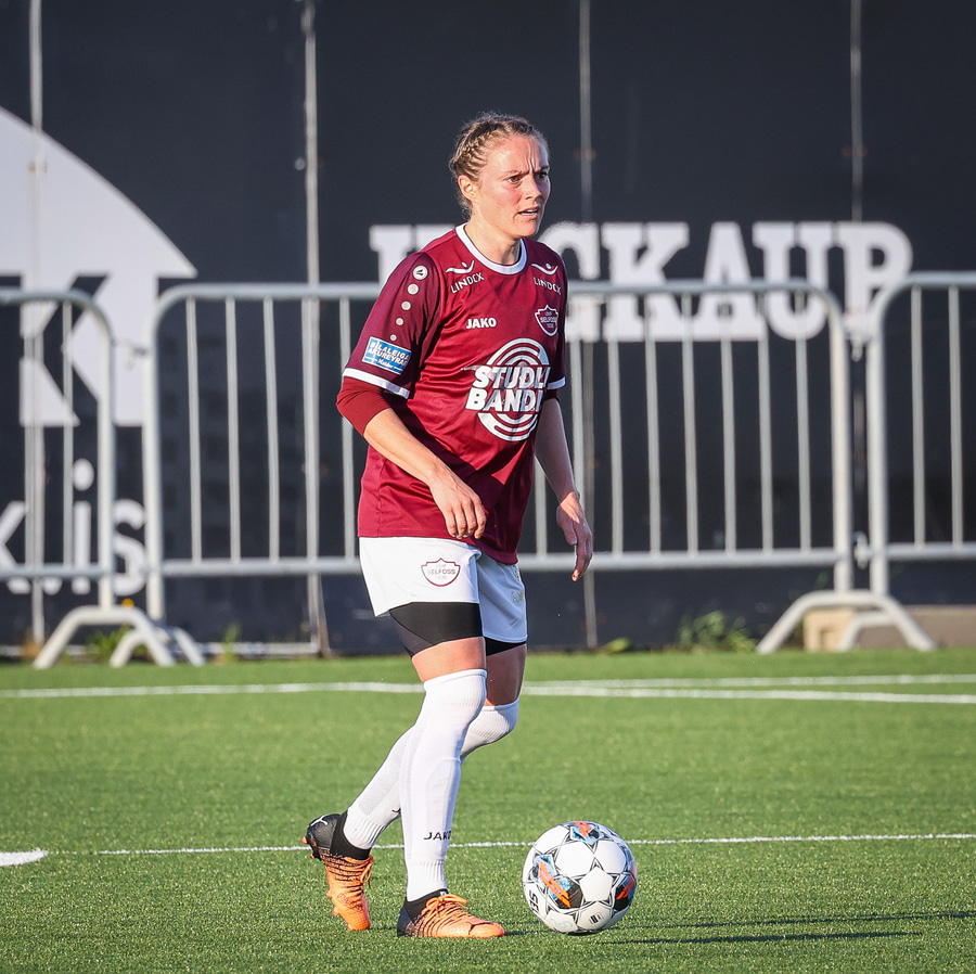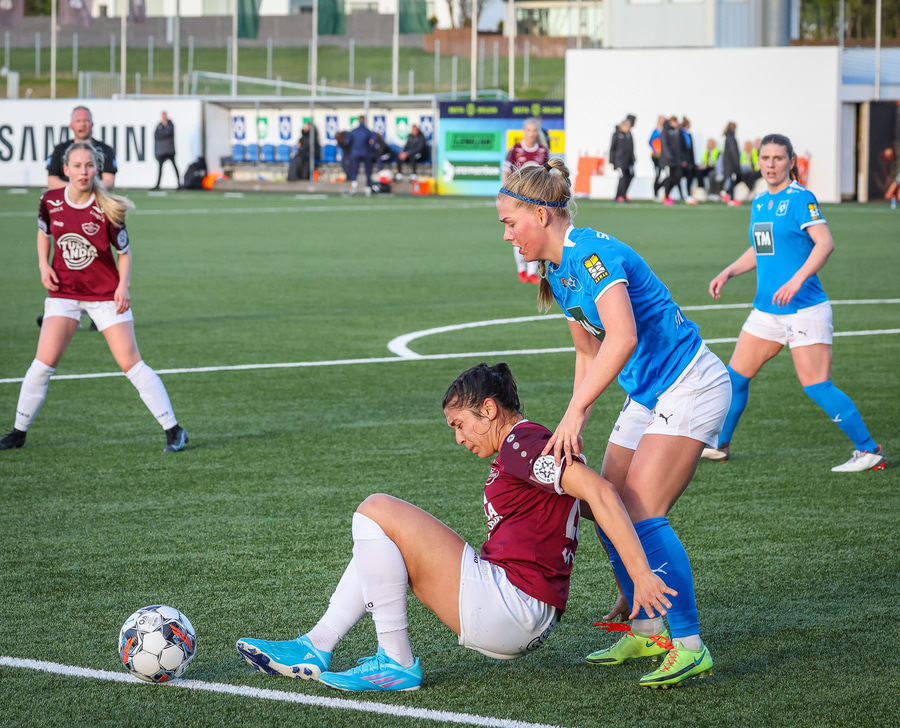Úlfa Dís gerir vel og býr sér til gott pláss á miðjunni og laumar boltanum svo inn fyrir á Snædísi en Áslaug nær henni og kemur boltanum frá.