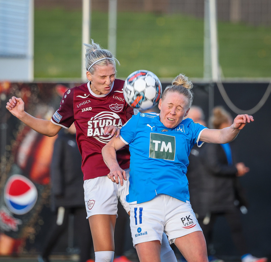 Betsy með boltann útihægra megin og þarf að hafa sig alla við heillengi til að koma boltanum fram hjá Sif en á endanum kemur hún boltanum inn í teig á Katrínu sem setur boltann í varnarmann Selfoss og vinnur hornspyrnu.