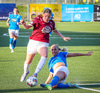 Úlfa Dís vinnur boltann við teig Stjörnunnar og sækir upp völlinn en Áslaug Dóra gerir vel og hleypur hana uppi og vinnur boltann.