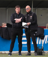 Samstuð hérna hjá Kötlu og Kiley, Katla liggur niðri en Kristján dæmir aukaspyrnu fyrir Víking.