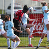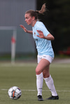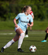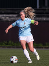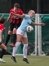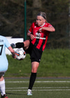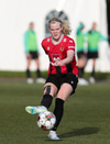 Danielle gerir vel og hleypur upp völlinn, finnur Danielle í fætur, sem snýr með boltann en beint í hendur Andreu.