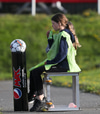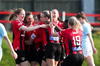 Leikurinn er stoppaður hér meðan Sæunn fær aðhlynningu, hún lá niðri í langan tíma. Bæði lið héldu áfram að spila meðan hún lá.