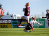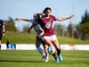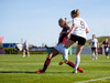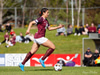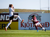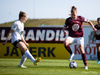 Auður fær boltann nálægt hliðarlínunni og leikur á varnarmann og á skot úr mjög þröngu færi en nafni ehnnar ver.