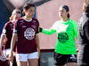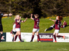 Hár bolti inná teig Selfoss sem Barbára skallar en skallinn beint á Söru sem á skot en það er hátt yfir markið.