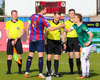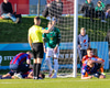 Eftir aukaspyrnu Blika steinliggur Binni Hlö inni í eigin vítateig. viðrist hafa fengið högg. Jafnar sig og stendur á fætur