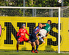 Brynjar Hlöðvers fer hér í mjög fulliorðins tæklingu á Omar Sowe. Einar Ingi dómari dæmir ekkert og bekkurinn hjá Blikum allt annað en sáttur. Ég skil pirringin vel enda hefði ég haldið að tækling af þessu tægi verðskuldaði að minnsta kosti aukaspyrnu og líklega spjald.