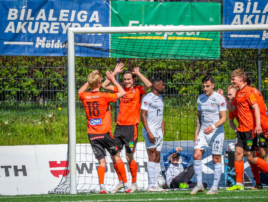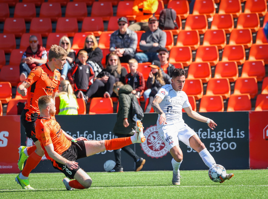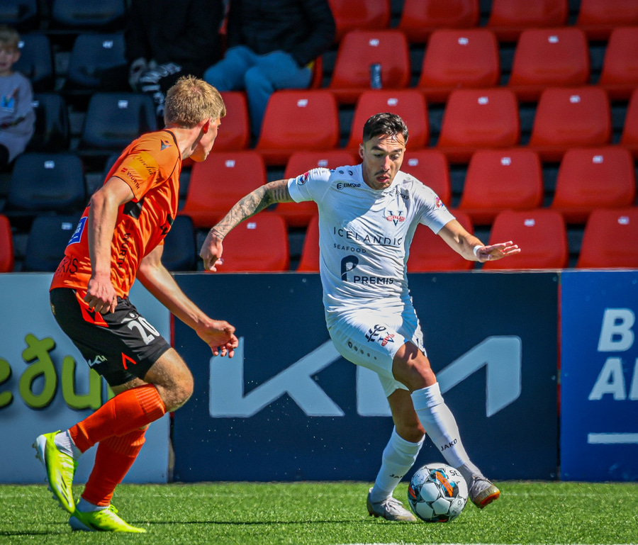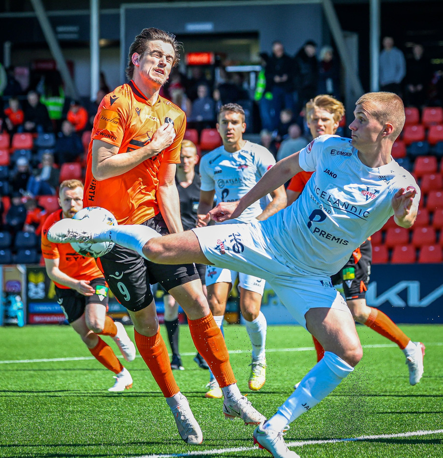 Deniz Yaldir verið rosalega líflegur hérna í byrjun leiks. Fær boltann út til vinstri og boltinn af Halli Húna og afturfyrir endarmörk.
