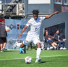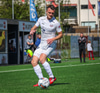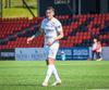 Mathias Laursen fær boltann fyrir utan teig Vestra og nær skoti á markið en boltinn yfir.